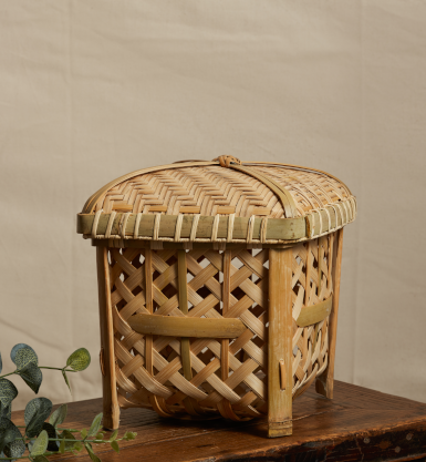 Bamboo tea baskets originated in the Song dynasty, and were referred to as “yu qi” to prevent moisture and odor from affecting the aroma of tea. According to The Classic of Tea, “yu qi” is woven with bamboo strips and mounted with paper. To keep the tea dry during rainy days, an ash pan is placed in the middle of the basket.