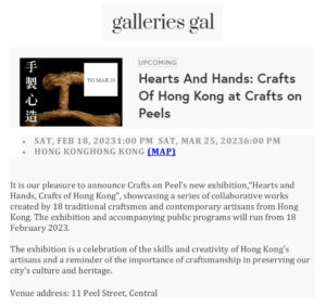 Hearts and Hands: Crafts Of Hong Kong at Crafts on Peels